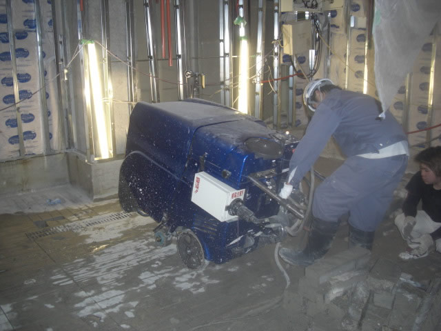 電動コンクリートカッター工法 Electric concrete cutter 密閉切断状況 密閉切断状況 密閉切断状況 密閉切断状況 特 長 切断精度、切断能力が優れています。 切断吸引装置により、汚水の飛散を防ぎます。 エンジンの機械より静かです。 排気ガスが出ないので密閉空間での作業ができます。 用 途 冷凍庫などの密閉空間での切断工事 工場内の排気ガスを嫌う場所での切断工事 スーパーなどの食品売り場近くでの切断工事