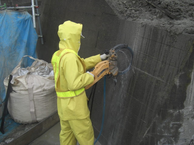 リングカッター工法 Ring cutter 擁壁切断 油圧ユニット リングカッター本体と刃 特 長 センター軸がないので、350mmのブレードで260mmまでの切断工事が可能です。 油圧(式)で、排気ガスがでません。 用 途 コンクリート壁などの切断工事 振動、騒音規制のある場所での切断工事 耐震スリットの切断工事 VS側溝、ボックス等の切断工事